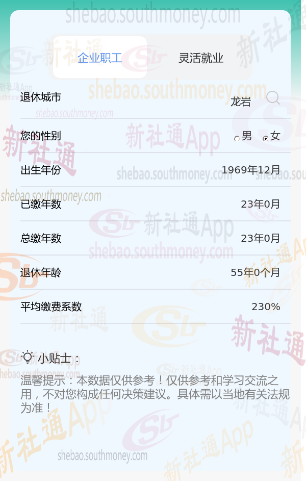 新社通app养老金计算器计算所得:
