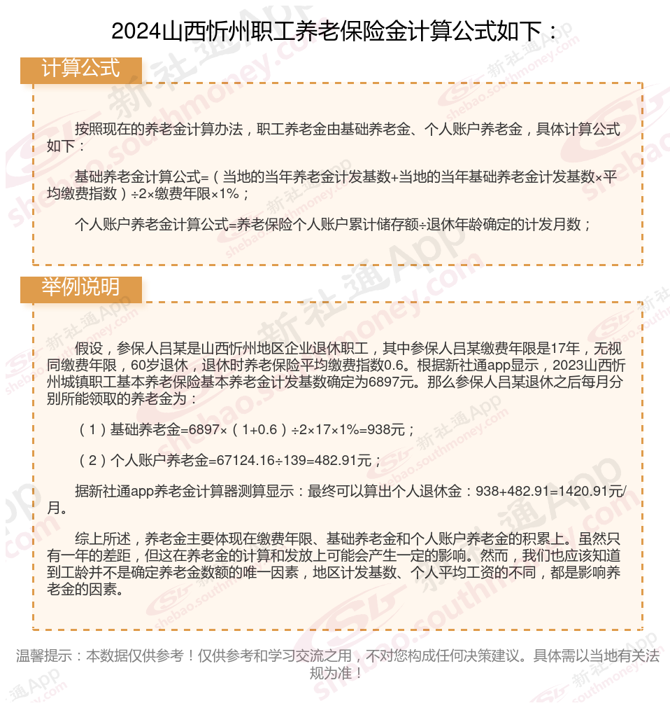 山西忻州退休工资养老金计算方法及公式2024年最新(举例说明)