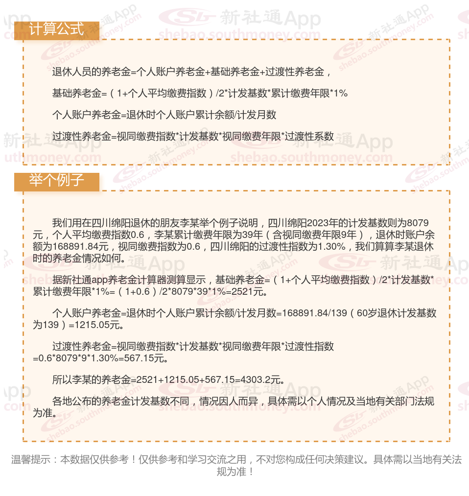 四川绵阳退休工资养老金计算方法及公式2024年最新(举例说明)