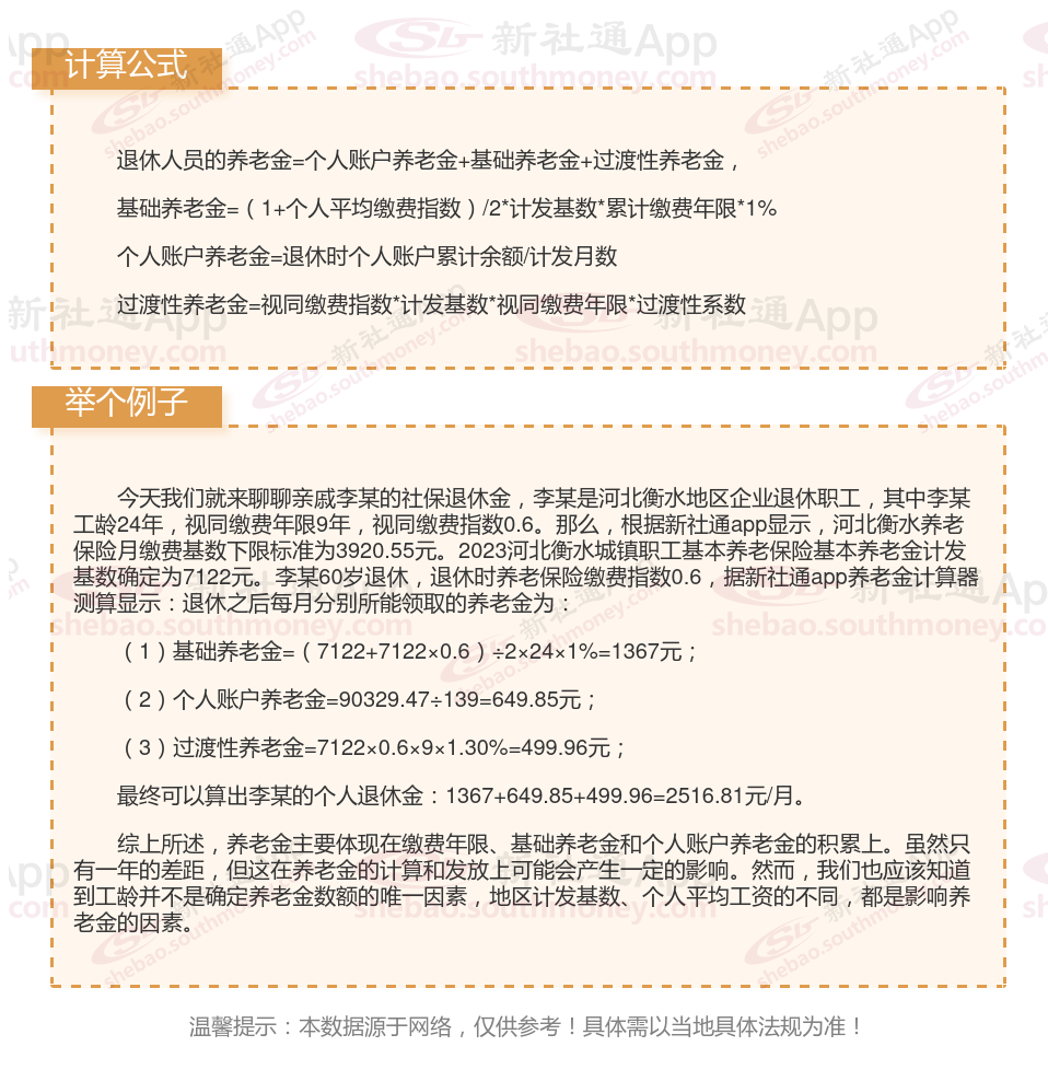 河北衡水退休工资养老金计算方法及公式2024年最新(举例说明)