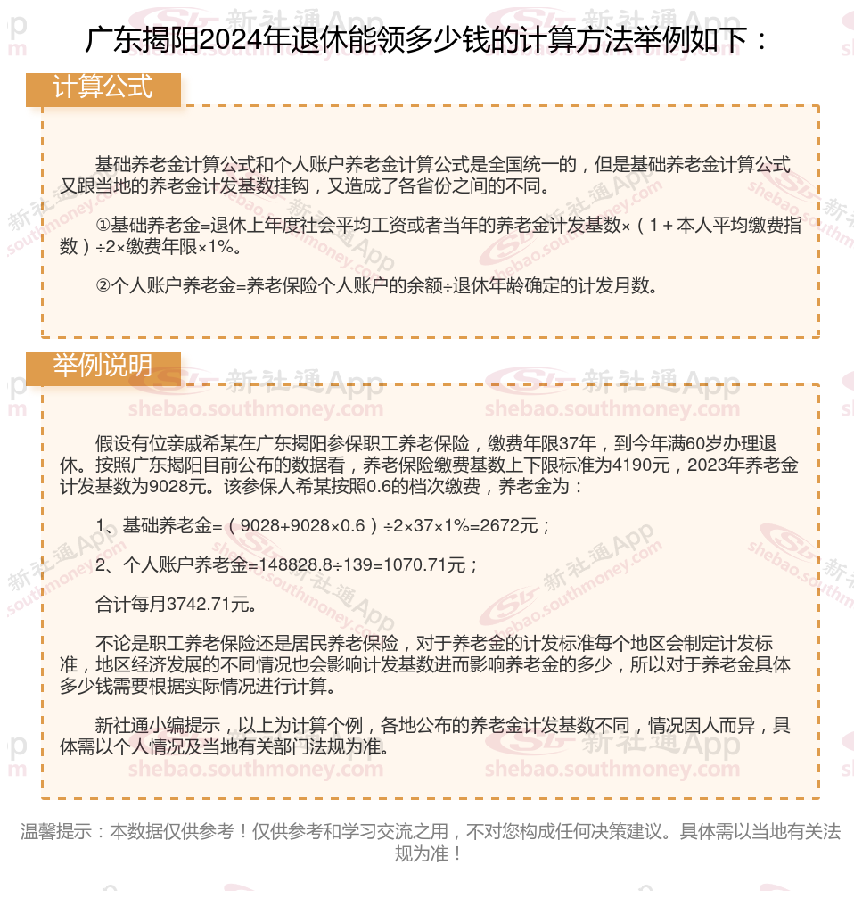 广东揭阳退休工资养老金计算方法及公式2024年最新(举例说明)