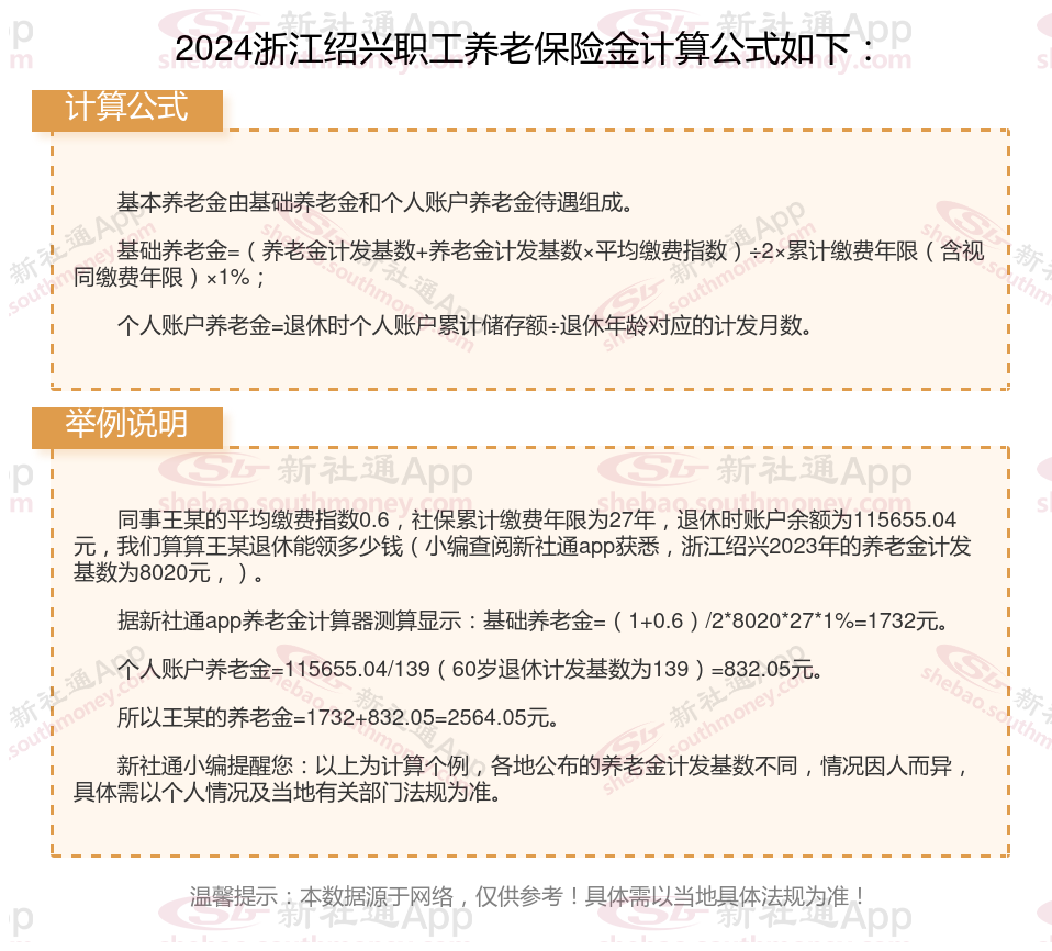 浙江绍兴退休工资养老金计算方法及公式2024年最新(举例说明)