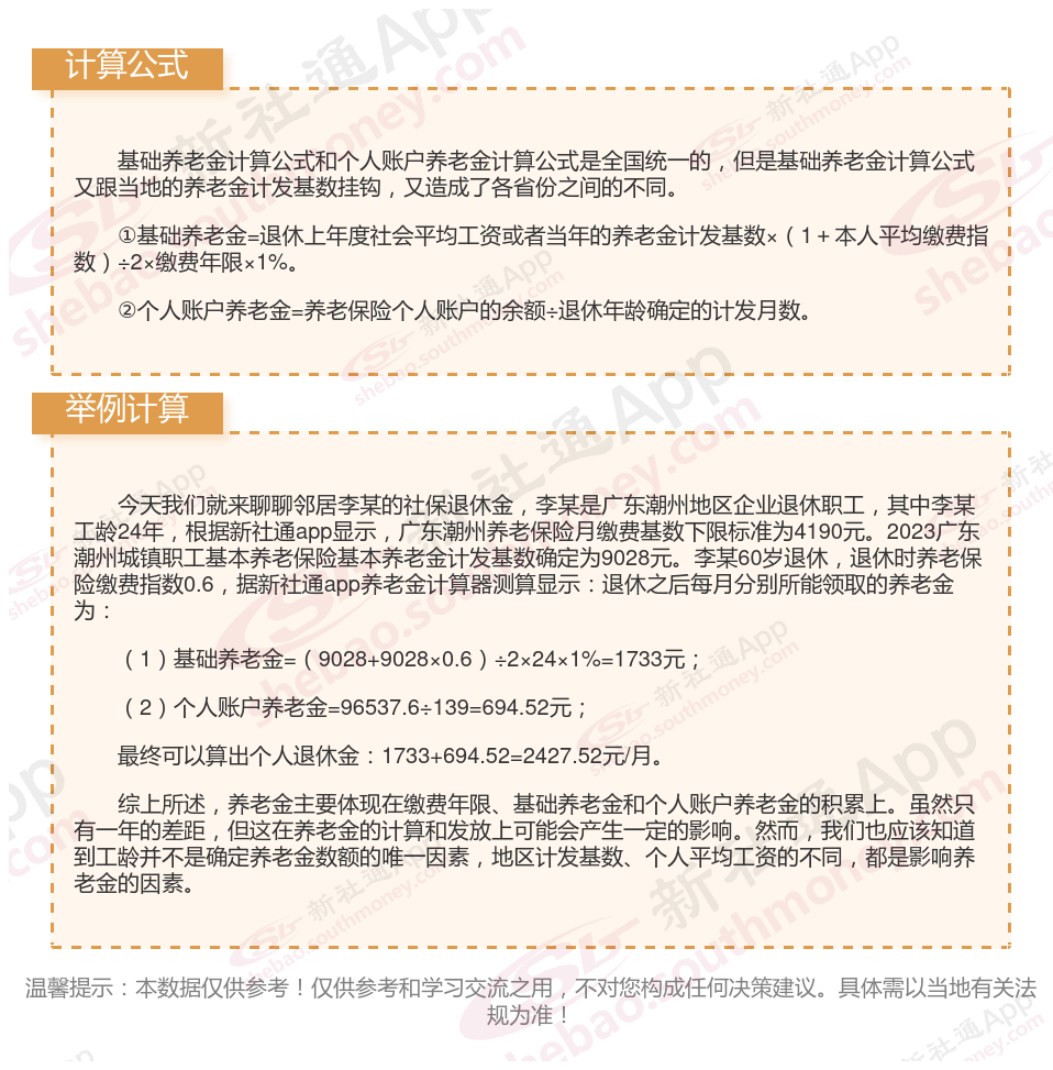 广东潮州退休工资养老金计算方法及公式2024年最新(举例说明)