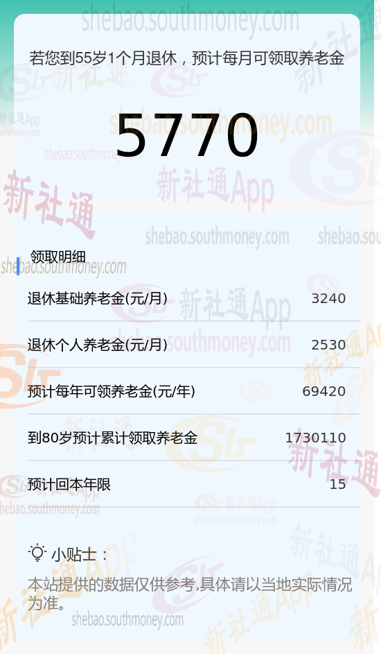养老金总和:两者合计,您每月的养老金总额为5770元。