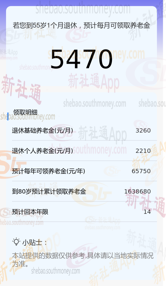 基础养老金:基础养老金是退休人员养老金的重要组成部分,其计算公式为:退休上年度社会平均工资(社平工资)×(1+本人平均缴费指数)÷2×缴费年限×1%。这个公式反映了退休人员在整个职业生涯中的工资水平和社会平均工资之间的关系,以及他们的缴费年限对养老金的影响。通过公式计算出每月大约3260元。