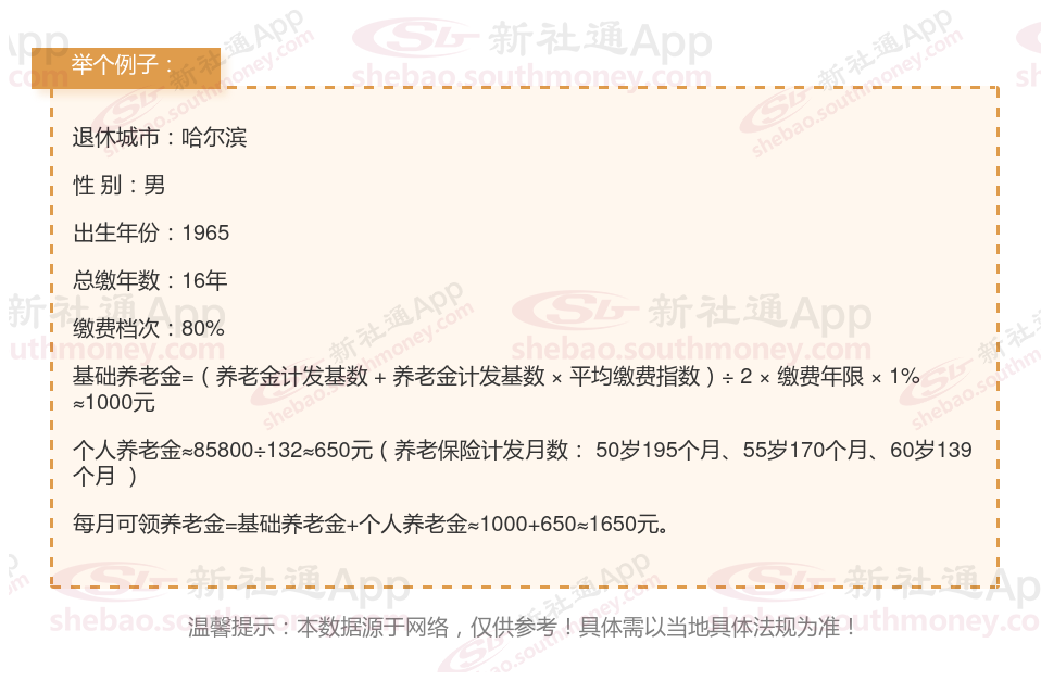 个人档案:男性,1965年出生,哈尔滨退休职工,社保缴费16载,档次80%。