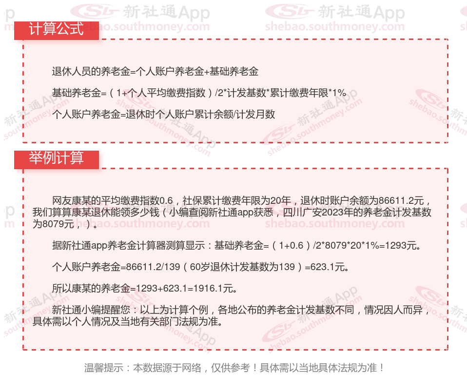 四川广安退休工资养老金计算方法及公式2024年最新(举例说明)