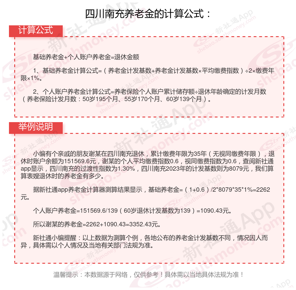 四川南充退休工资养老金计算方法及公式2024年最新(举例说明)