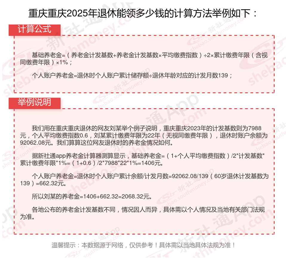 重庆重庆退休工资养老金计算方法及公式2024年最新(举例说明)
