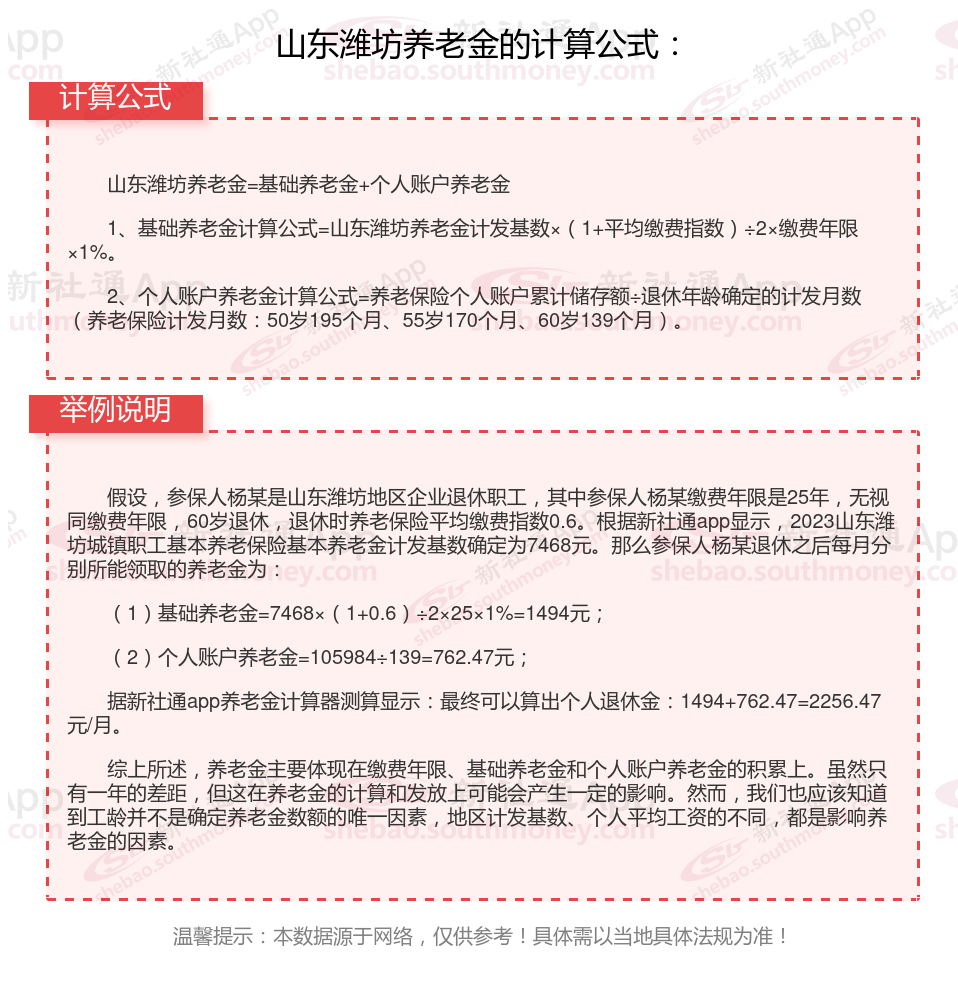 山东潍坊退休工资养老金计算方法及公式2024年最新(举例说明)