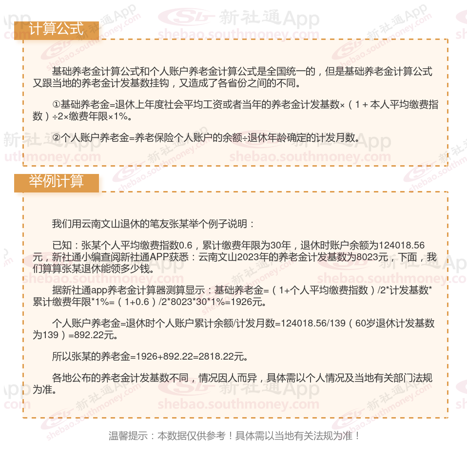 云南文山退休工资养老金计算方法及公式2024年最新(举例说明)