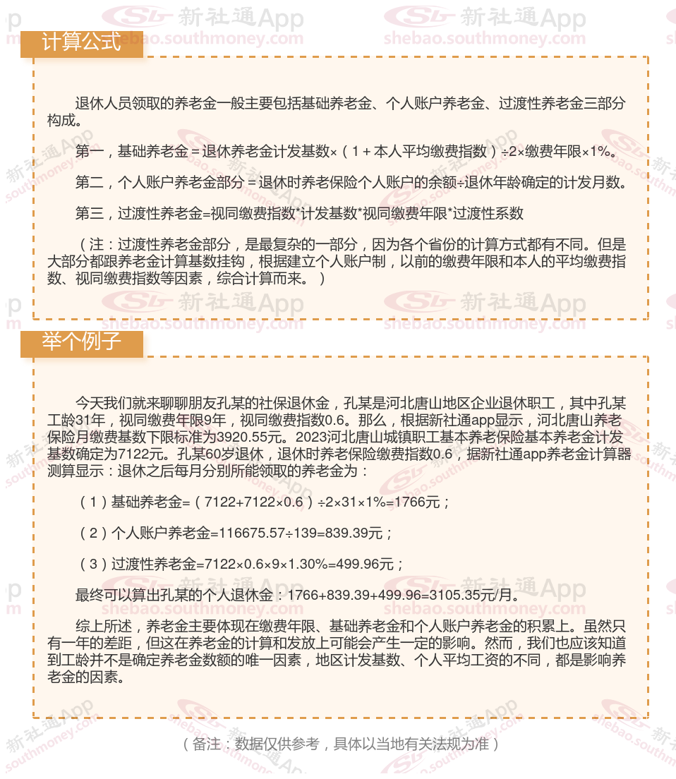 河北唐山退休工资养老金计算方法及公式2024年最新(举例说明)