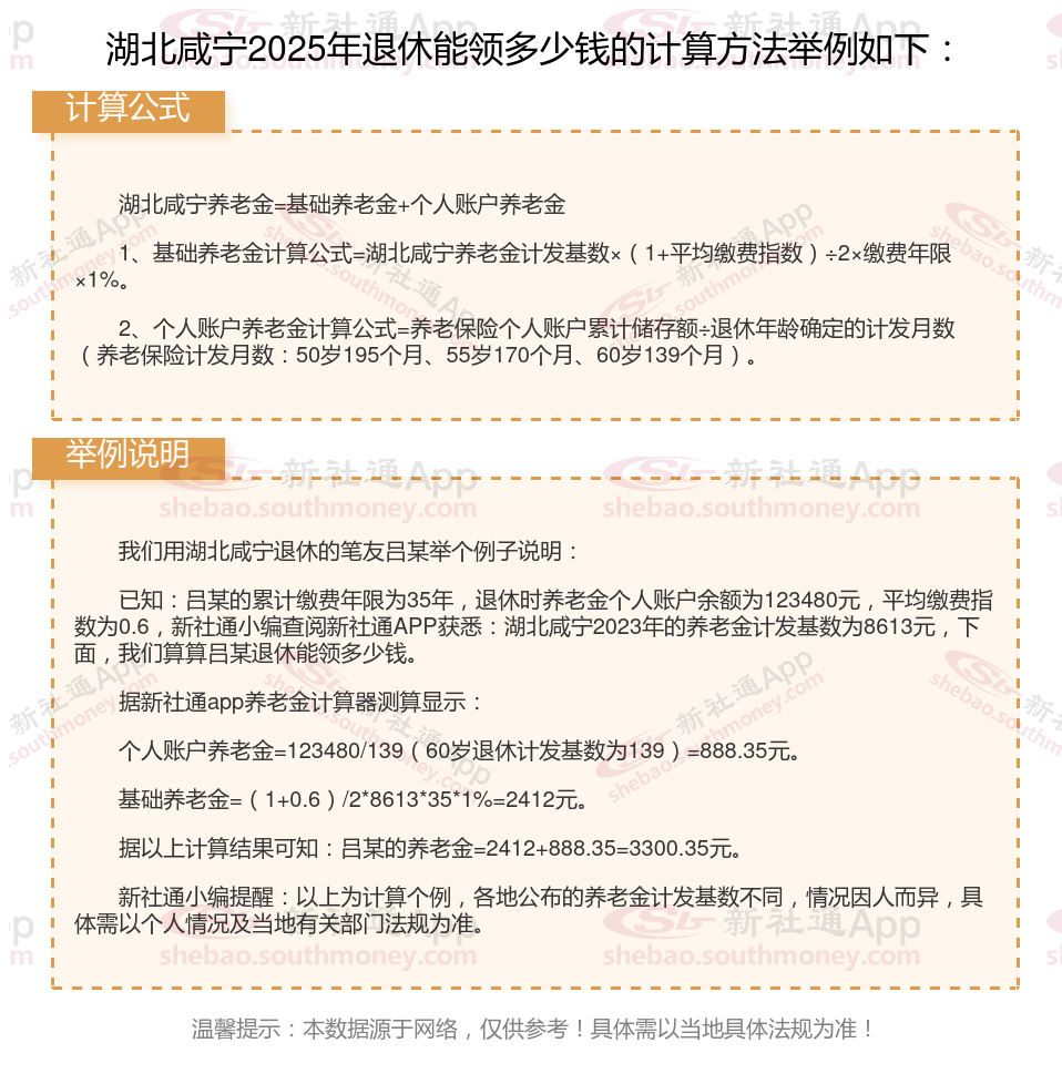 湖北咸宁退休工资养老金计算方法及公式2024年最新(举例说明)