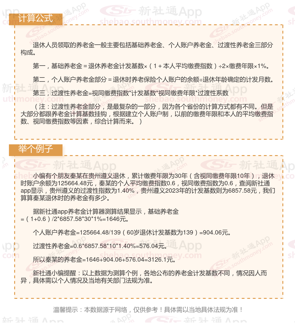 贵州遵义退休工资养老金计算方法及公式2024年最新(举例说明)
