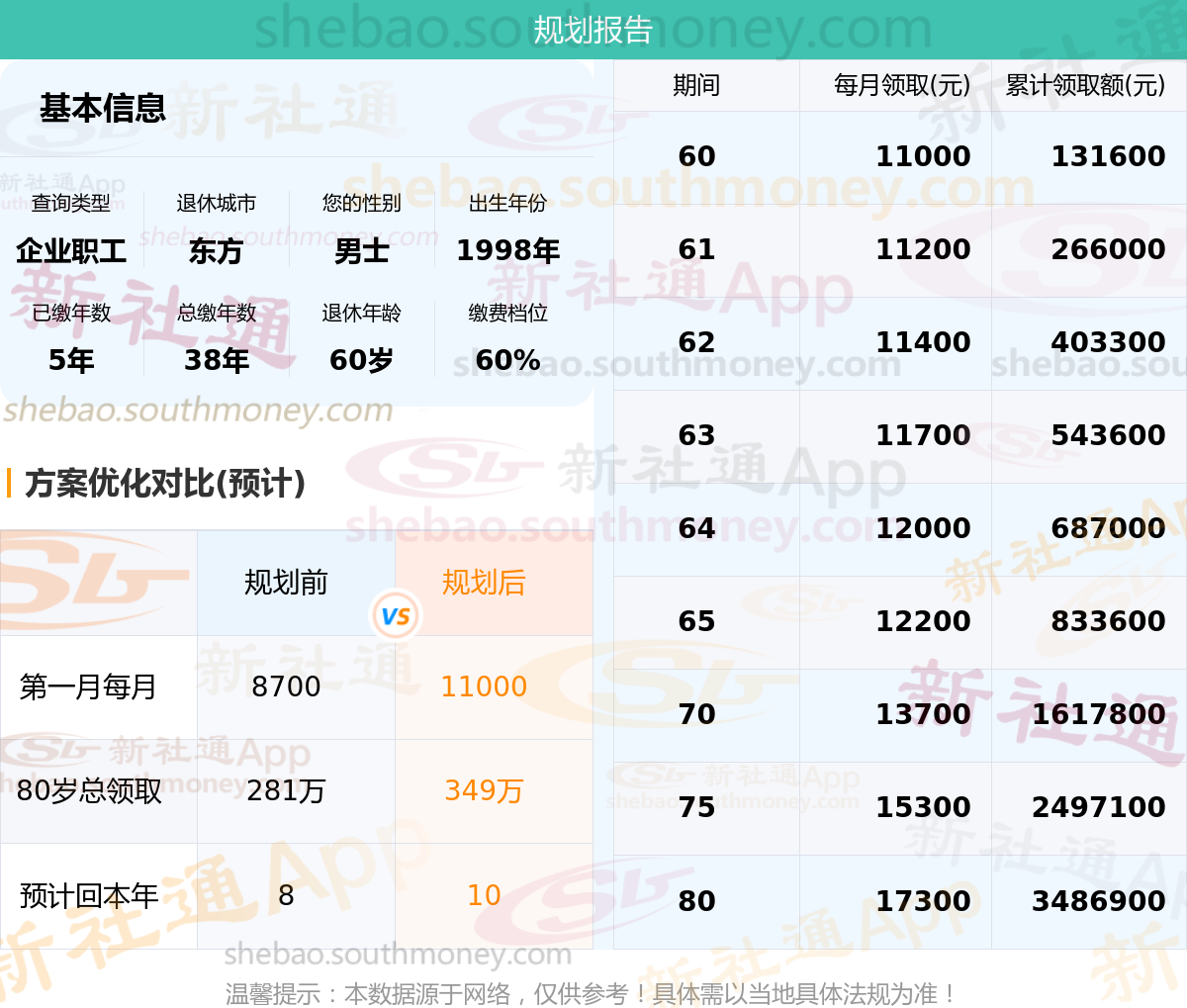 规划前:60岁退休后约领8700元,新社通APP-养老金规划后:60岁退休后约领11000元