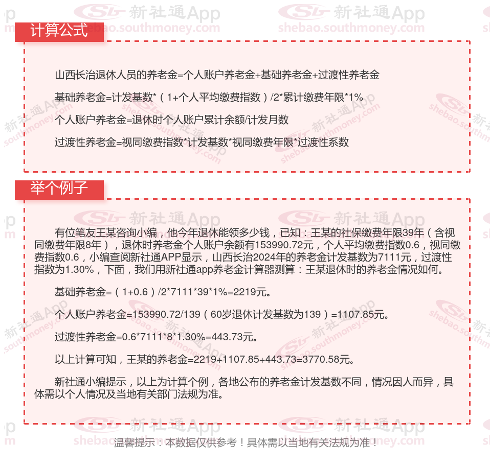 山西长治退休工资养老金计算方法及公式2024年最新(举例说明)