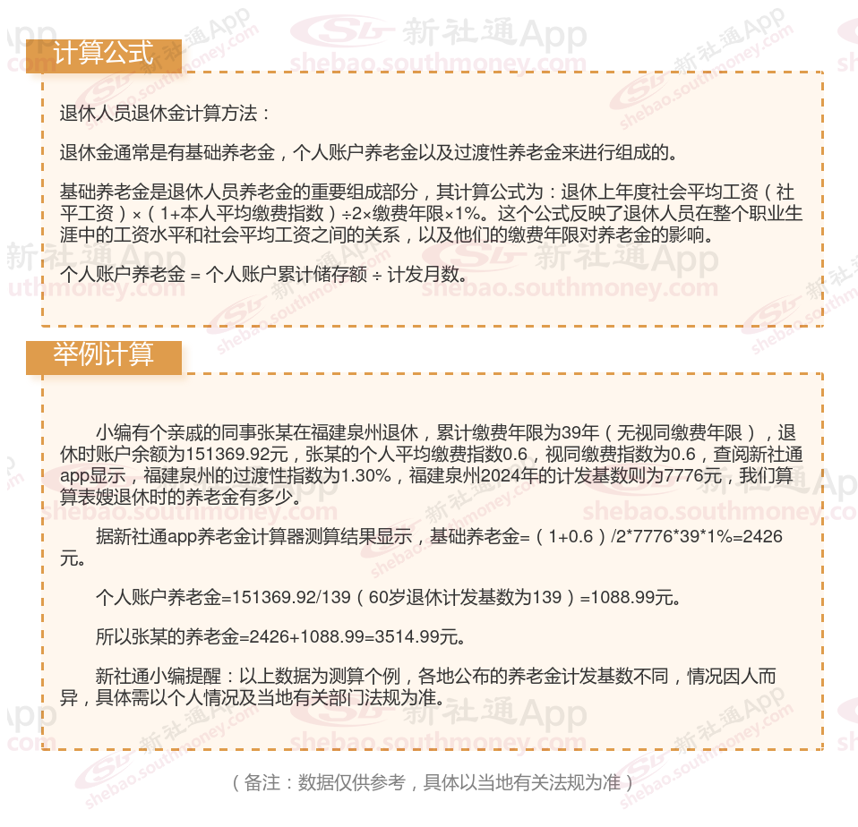 福建泉州退休工资养老金计算方法及公式2024年最新(举例说明)