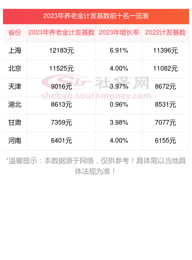 随着湖北十堰公布计发基数,大家想不想知道养老金计发基数目前在全国排名前几位的情况如何呢?下面是小编整理的养老金计发基数排名前十详情: