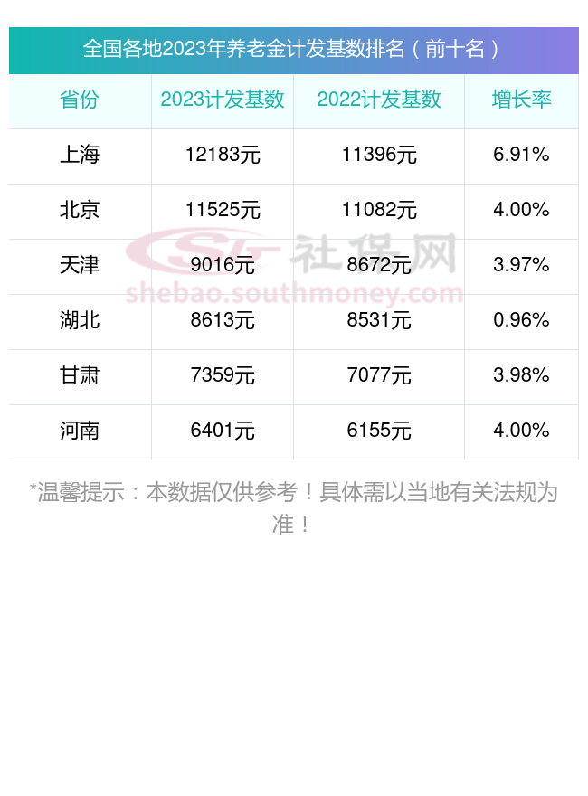 好多小伙伴想看看2023-2024年全国各地养老金计发基数排名前十,下面是社保网小编整理的最新数据,供您参考: