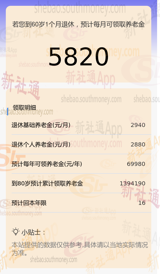每月可领退休工资待遇合计:2940+2880≈5820元。