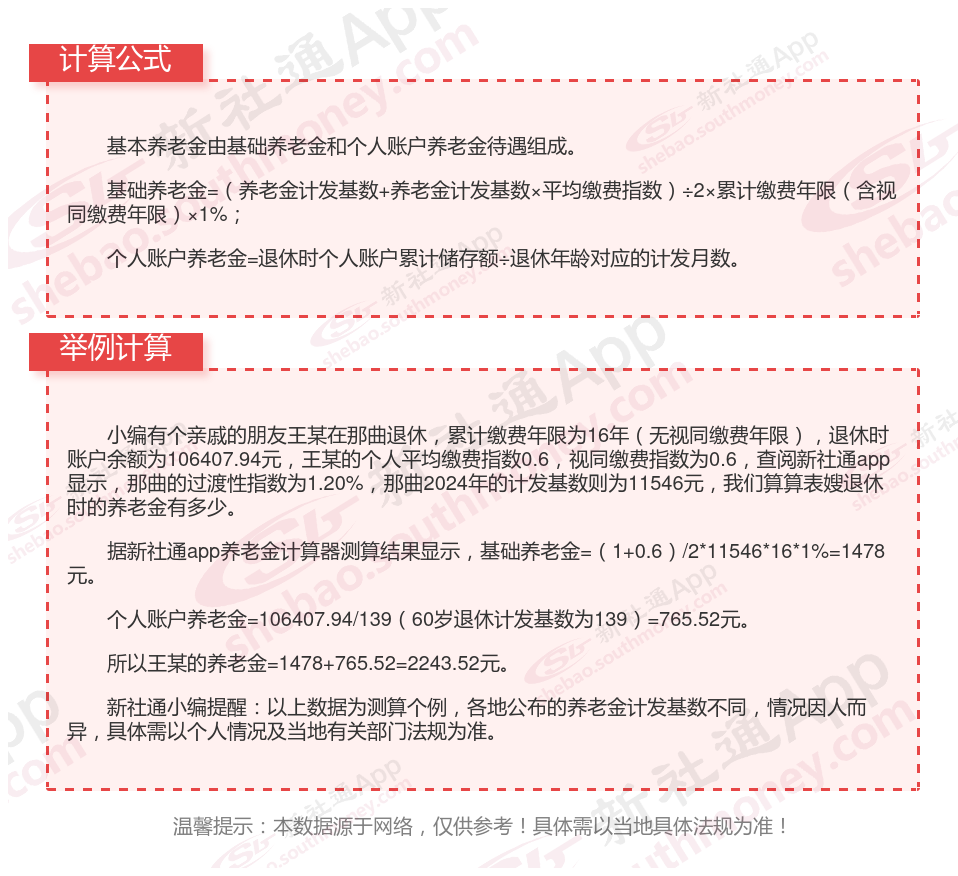 过渡性养老金(适用于特定人群):具体计算方法因地区而异,需参照当地法规执行。