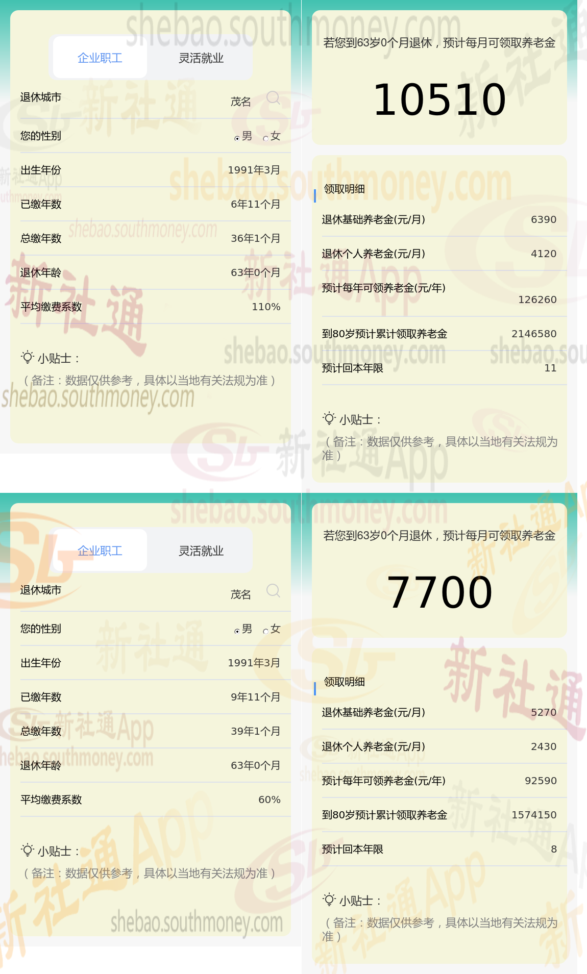 下面新社-app一起来看下,以茂名为例(不考虑过渡养老金):
