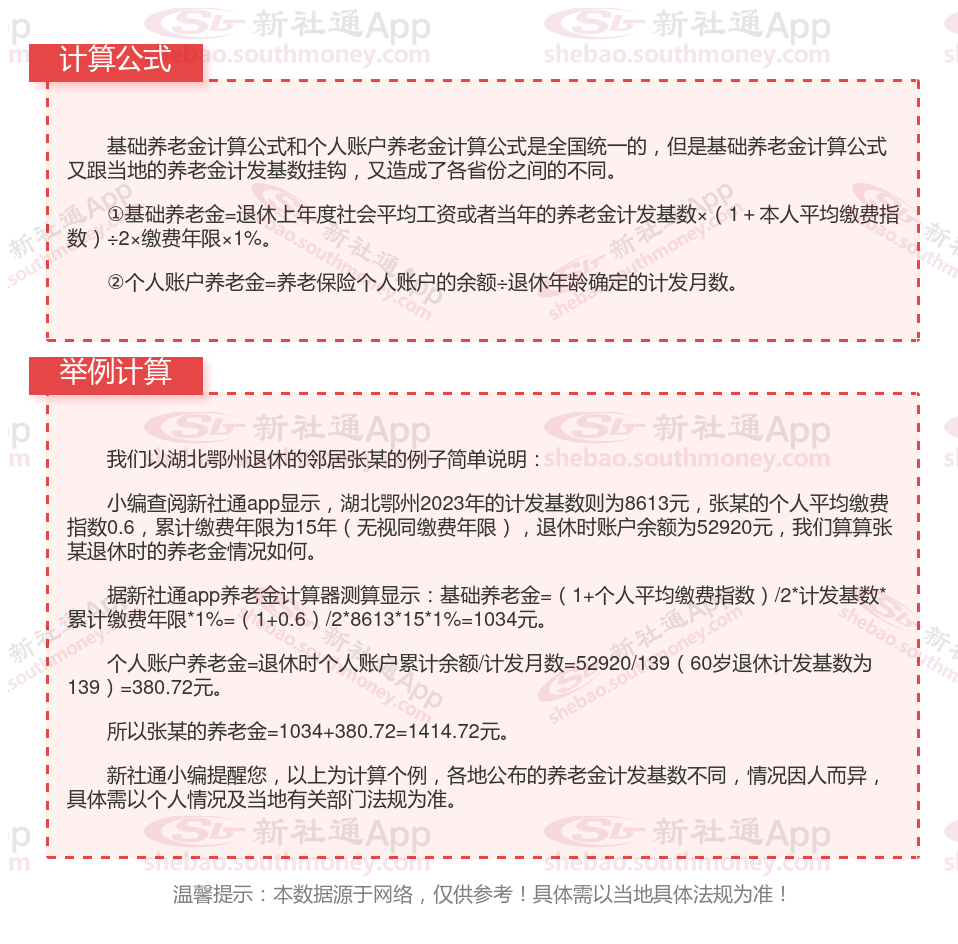 湖北鄂州退休工资养老金计算方法及公式2024年最新(举例说明)