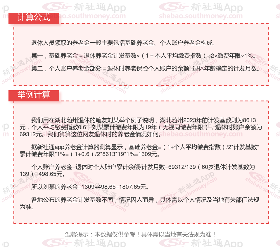 湖北随州退休工资养老金计算方法及公式2024年最新(举例说明)