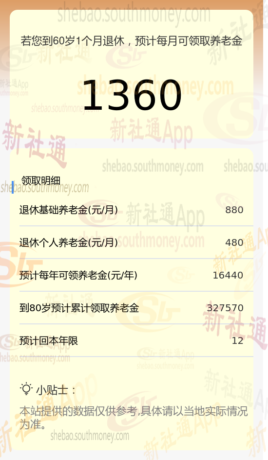 孔某,赣州人,1965年出生,工龄15年,男性,缴费档次按70%。岁月流转,他终于迎来了自己的退休时光。借助新社通app养老金在线计算器计算所得: