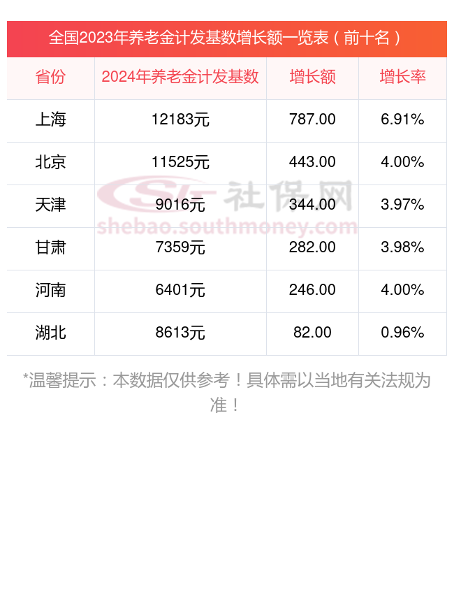 查阅新社通app显示,下面是已经公布2023年养老金计发基数的前10省份的具体情况