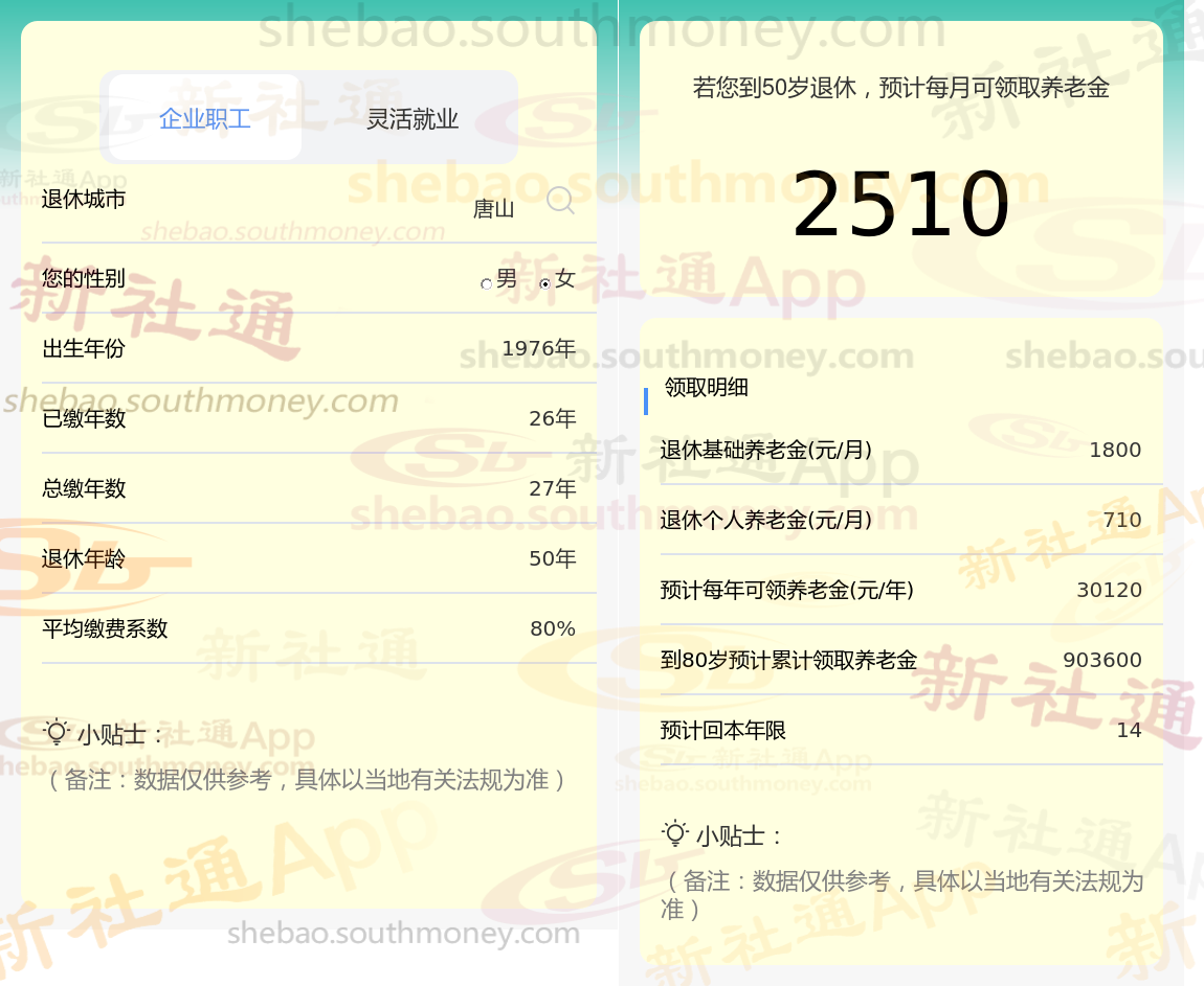 查阅新社通app显示,唐山职工退休养老金=基础养老金+个人养老金