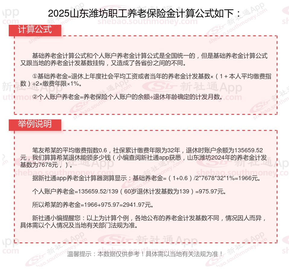 山东潍坊退休工资养老金计算方法及公式2024年最新(举例说明)