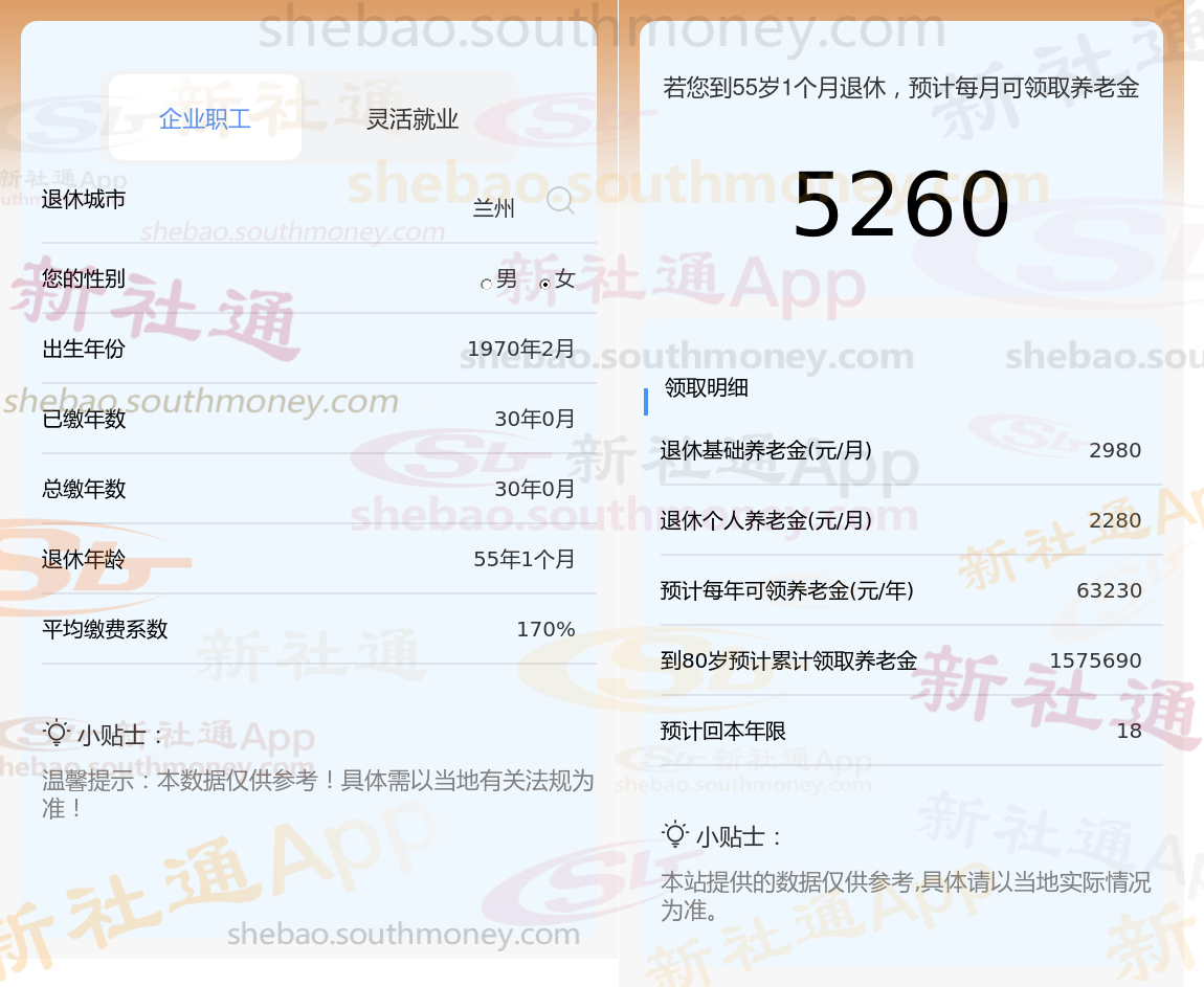 个人档案:女性,1970年出生,兰州退休职工,社保缴费30载,档次170%。