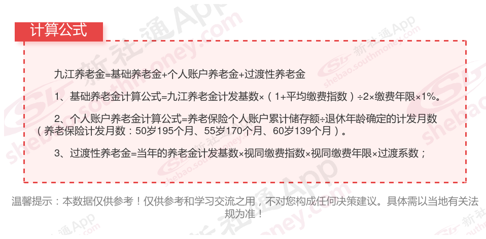 下面新社-app一起来看下,以九江为例(不考虑过渡养老金):
