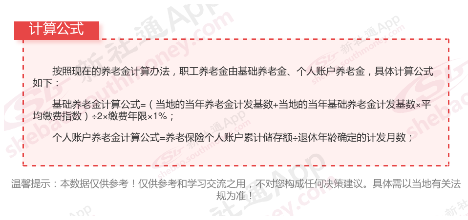基础养老金=(当地上一年度的社会平均工资×社会平均工资平均缴费指数)÷2×缴费年限×1%。