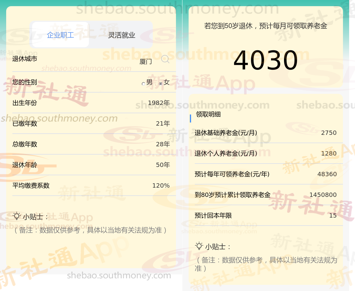 通过新社通APP-养老金计算所得:退休城市、出生年份、退休年龄、缴费系数都相同的情况下,社保缴费年限累计28年时,计算如下: