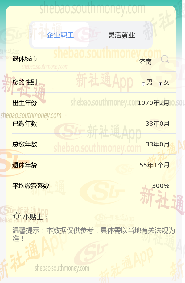 例如济南,1970年出生女性,社保缴费档次为300%。