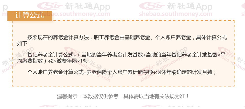 据新社通app了解,2025年养老金最新计算公式是这样的: