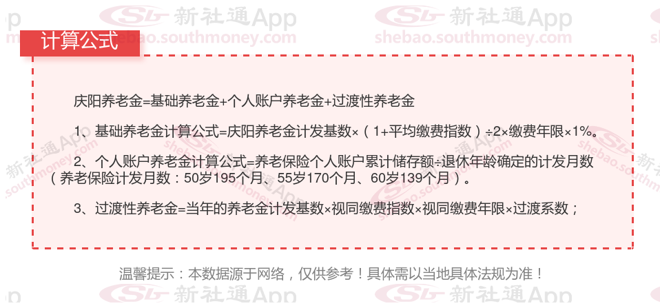 基础养老金=(退休上一年庆阳在岗职工月平均工资+退休上一年庆阳在岗职工月平均工资×个人平均缴费工资指数)÷2×累计缴费年限(含视为缴费年限)×1%。