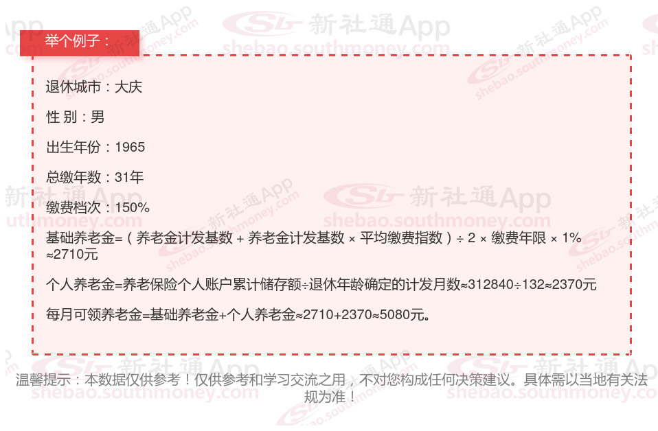 新社通app养老金计算器计算所得: