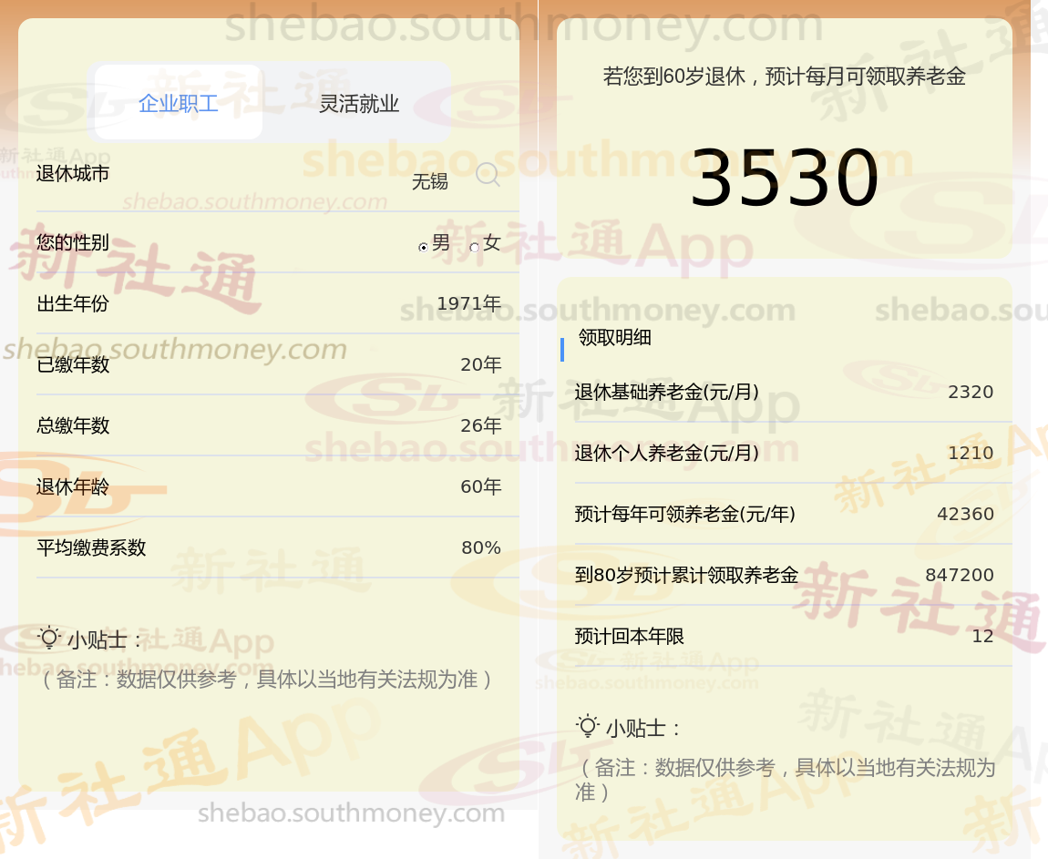 查阅新社通app显示,无锡退休人员养老金计算公式