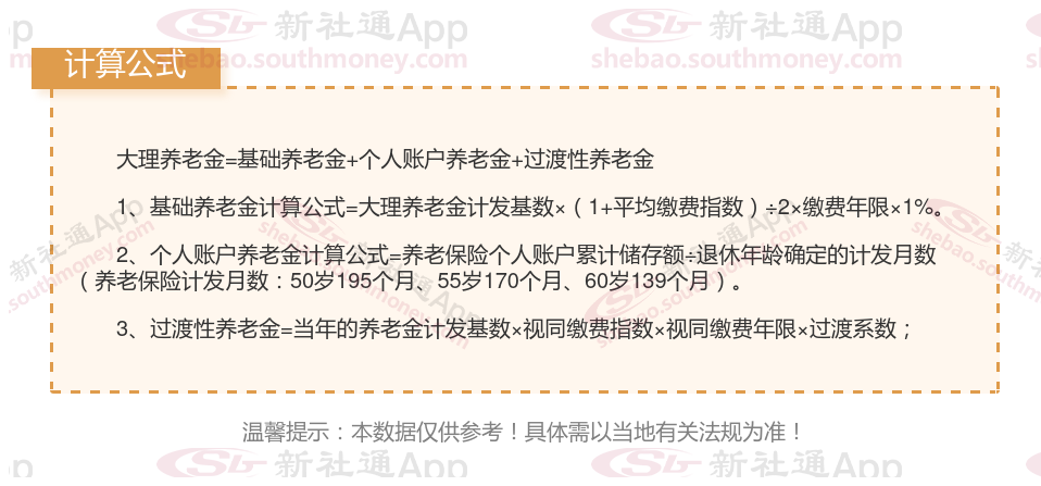 下面新社通小编一起来看下,以大理为例(不考虑过渡养老金):