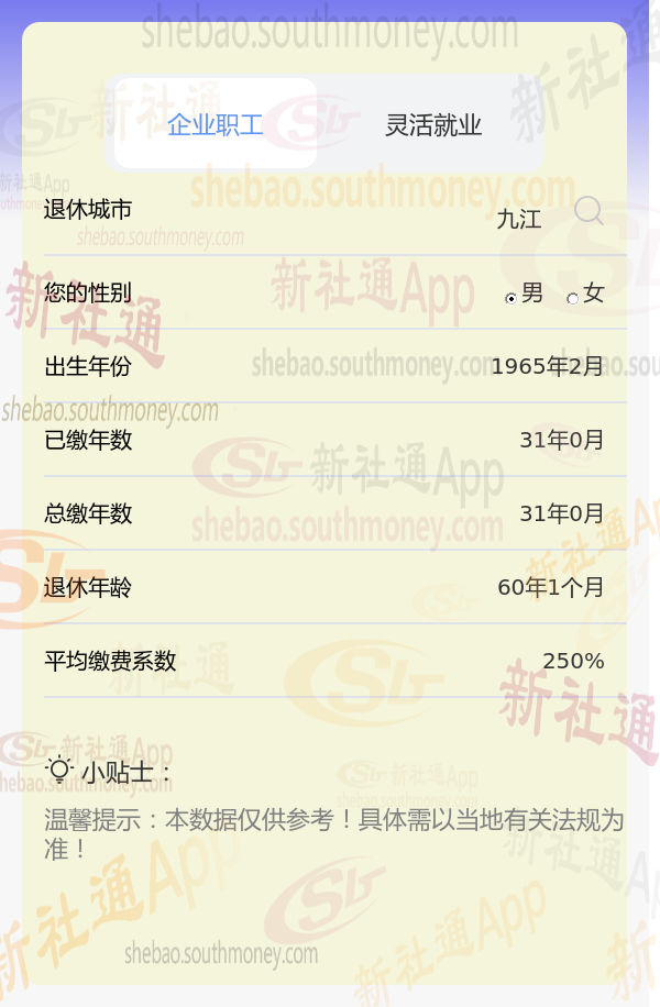过渡性养老金=(上一年九江在岗职工月平均工资+上一年九江在岗职工月平均工资×个人平均缴费工资指数)÷2×1995年12月31日以前未建立个人账户的累积缴费年限×1.3%。