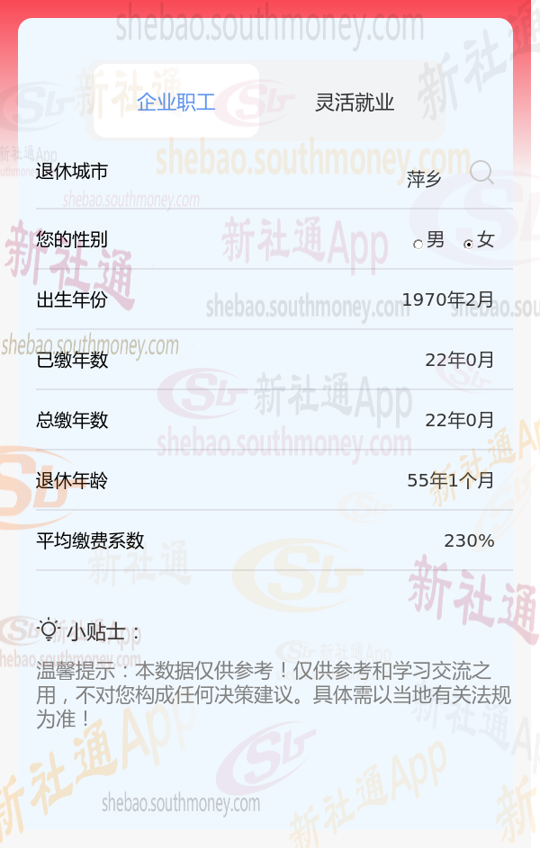 5、退休年龄:根据的退休年龄要求,男性预计退休年龄为63岁,女性预计退休年龄为55岁或58岁(具体根据当地法规而定)。这一数据通常由社保系统自动计算得出。