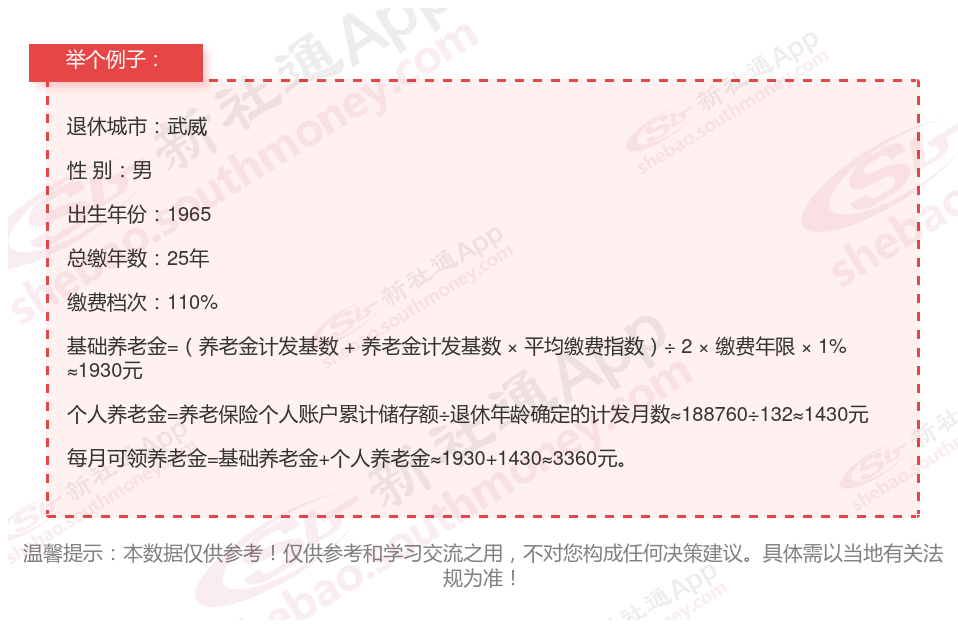 新社通app养老金计算器计算所得: