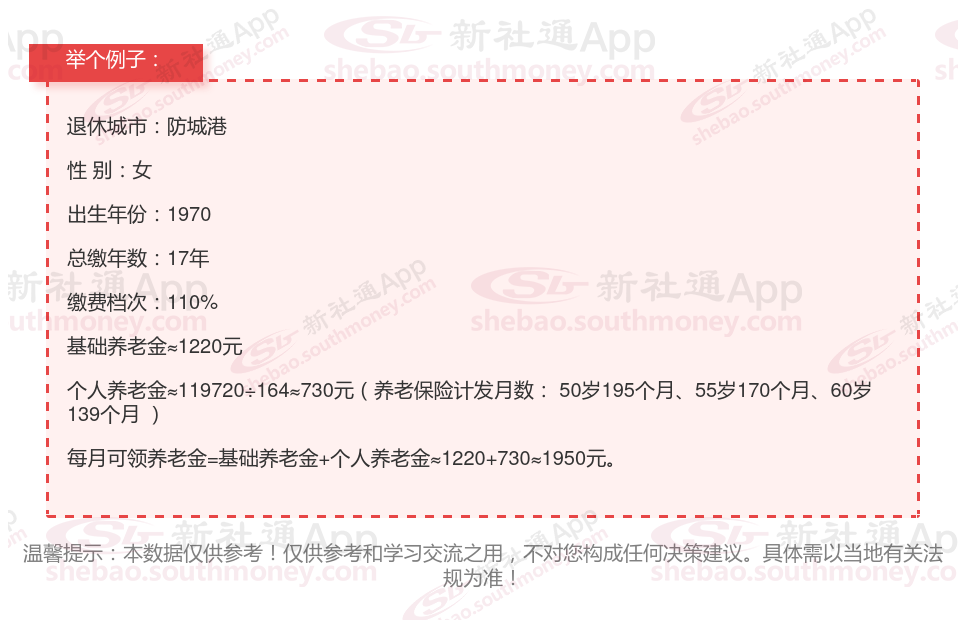 下面随着新社APP一起来看看,广西防城港交17年养老保险每个月能领多少?