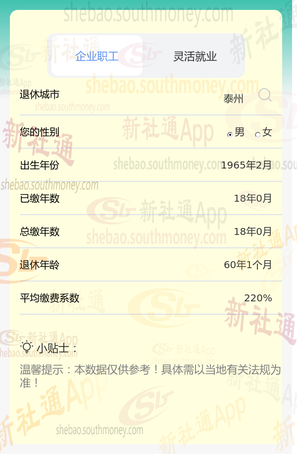 泰州18年基础养老金:基本养老金由统筹养老金和个人账户养老金组成。基本养老金根据个人累计缴费年限、缴费工资、当地职工平均工资、个人账户金额、城镇人口平均预期寿命等因素确定。通过公式计算出每月大约2530元。