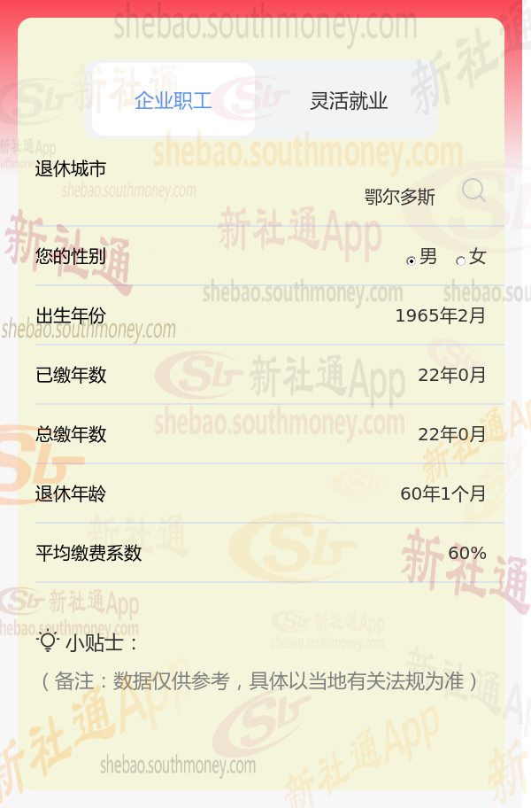 新社通app养老金计算器计算所得: