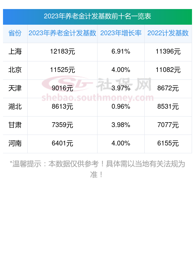 下面是已经公布2023年养老金计发基数的前10省份的具体情况