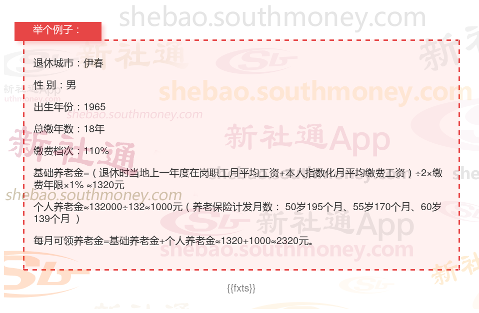 基础退休金:基础养老金=(当地上一年度的社会平均工资×社会平均工资平均缴费指数)÷2×缴费年限×1%。每月大约1320元。